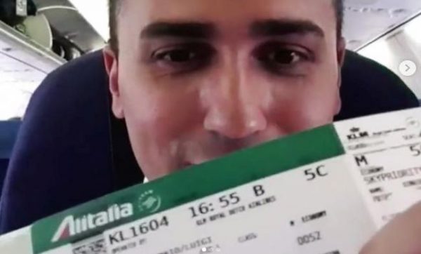 Il ministro Di Maio con un biglietto economy di Alitalia