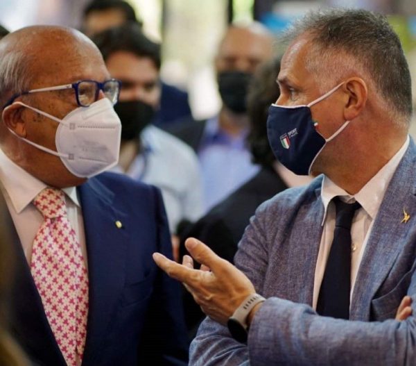 Il ministro del turismo Massimo Garavaglia a olloquio con il patron della Bmt Angioletto De Negri