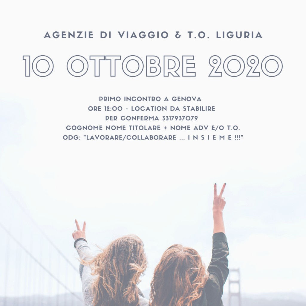 Confrontarsi e collaborare per affrontare il futuro. Sono questi gli obiettivi di alcuni operatori liguri che hanno deciso di riunirsi il prossimo 10 ottobre alle ore 12.00 a Genova per mettere sul piatto idee concrete ed innovative. Nessun logo, nessuna bandiera politica nè associativa per le adv ed i t.o. ma solo nuovi progetti e programmi che consentano alle singole realtà di metter in risalto le proprie peculiarità e specializzazioni.