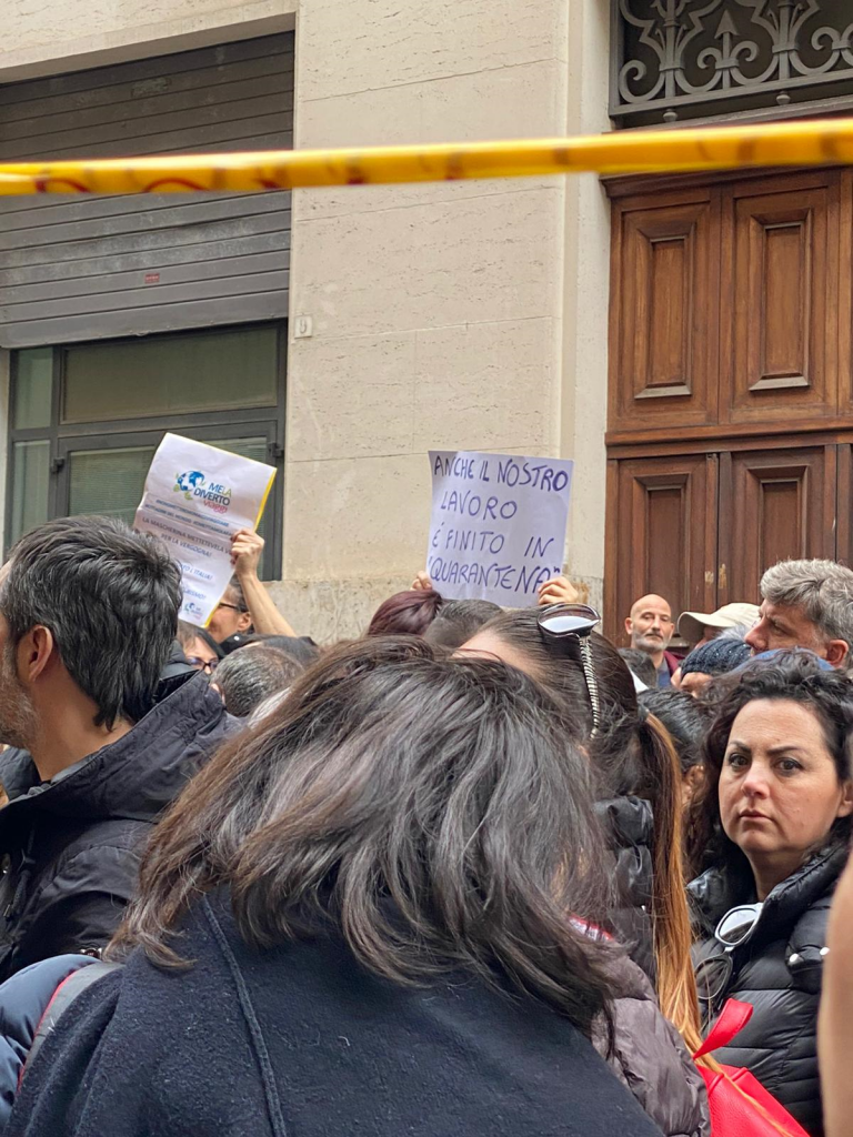 Tanti i cartelloni preparati per supportare il grido di aiuto in un momento di grande difficoltà del comparto: ‘il peggior virus è l’ignoranza’, ‘grazie per il disastro finanziario’, ‘tutelateci, noi siamo quelli che vi faranno ripartire’.