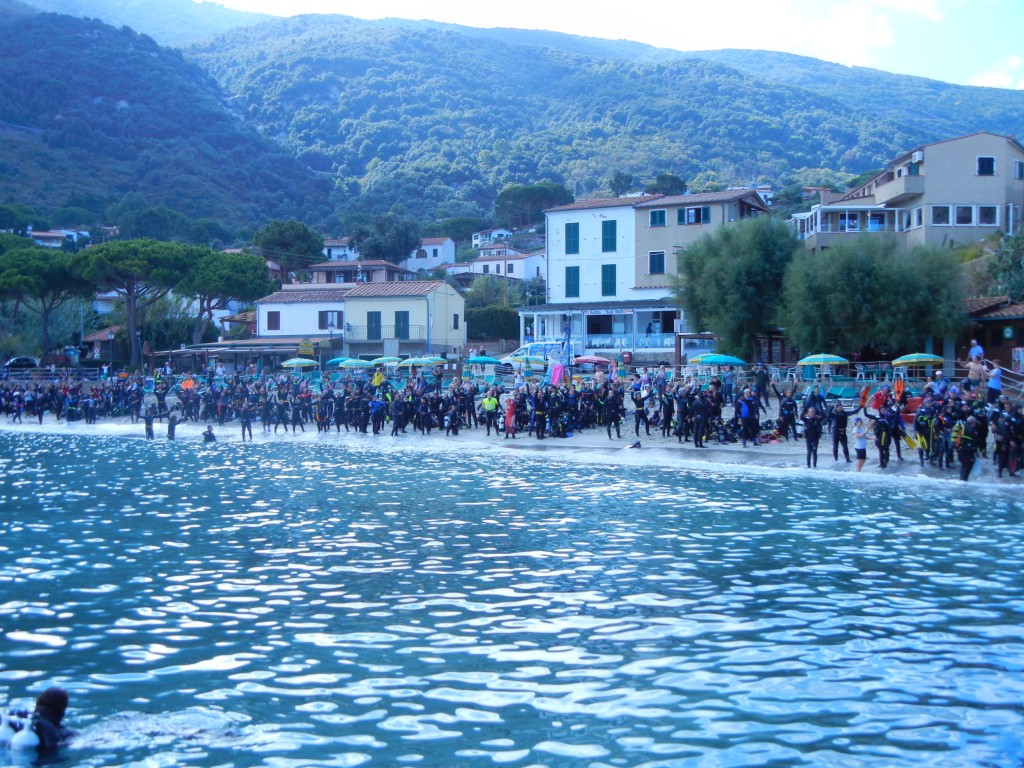 La spiaggia di Sant’Andrea affollata dagli oltre 200 subacquei partecipanti alla manifestazione “Guinness world record”
