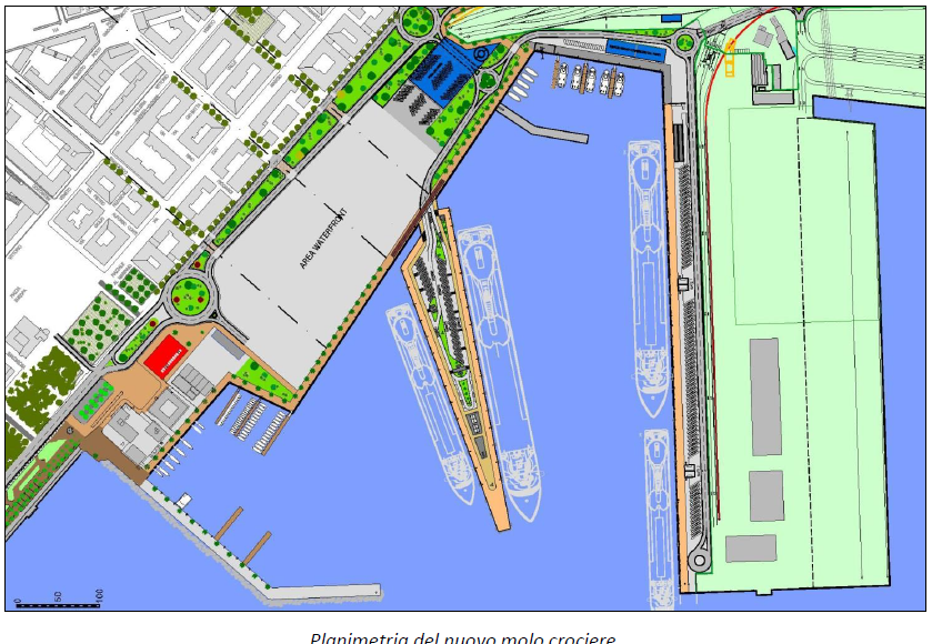 In attesa della progettazione e realizzazione della stazione crociere, il nuovo Molo Crociere assolverà alla funzione di infrastruttura marittima di attracco di navi in transito, con smistamento dei passeggeri su mezzi di trasporto su gomma.