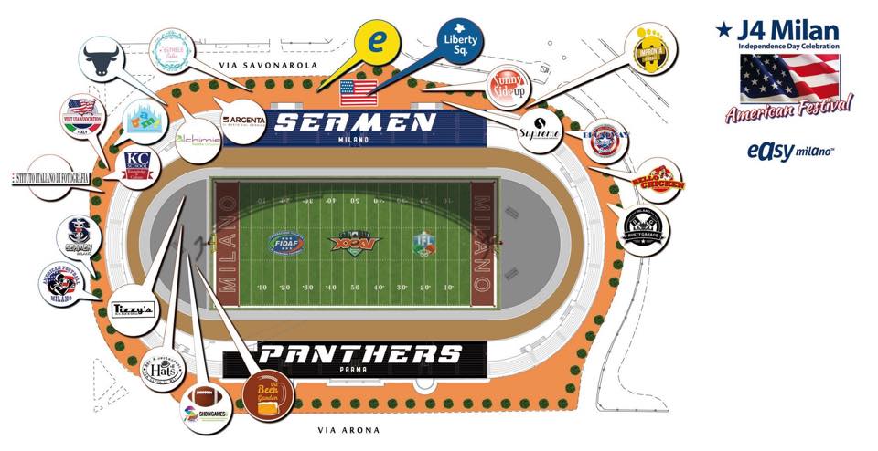 L’occasione è il 4 luglio, l’Independence day, la festa nazionale americana che celebra la conquista dell’indipendenza. Nel week-end attorno al velodromo Vigorelli, sede storica del football americano in Italia, si svolgerà “J4Milan -American Festival” il cui clou sarà il Super Bowl, la 35ª finale del massimo campionato di football americano italiano, che vedrà in campo i Seamen Milano, campioni in carica e i Panthers Parma, una delle più blasonate squadre del Paese. Sarà il remake dello scorso Super Bowl, vinto a Ferrara dai milanesi. La kermesse che inizierà venerdì e finirà domenica, vedrà la partecipazione di rappresentanti del consolato Usa di Milano, della camera di commercio americana e del padiglione Usa Expo in una grande festa per la comunità americana di Milano. Visit Usa parteciperà attivamente all’evento portando una ventata di “Usa mood” con musica, fuochi d’artificio, tribune Box, gazebo, tutto intorno allo stadio, con il toro meccanico, auto d’epoca, cibo, bevande. Con 20 euro si accede allo stadio (minori di otto anni gratis) con posto unico e con il braccialetto e biglietto in tasca è possibile uscire e rientrare quando si desideri. Per i fan del football americano, ingresso tribune, sabato 4 luglio, a partire dalle 18, squadre in campo e warm up ore 18,45, inizio evento ore 19,30, inni ore 19,55 kick off ore 20, half time show, premiazioni.
