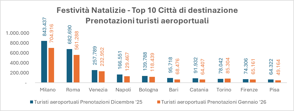 Le grandi città italiane si preparano a fare da palcoscenico a questa invasione festosa. Milano svetta con 1,6 milioni di arrivi aeroportuali, seguita da Roma con 1,2 milioni, staccando nettamente le altre destinazioni.