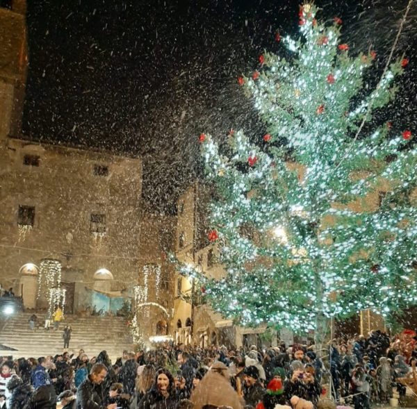 Continua Cortona Christmas 2021. Dal 27 novembre a Cortona città rinascimentale in provincia di Arezzo si sono accese le luci di Natale, il grande albero e le luminarie. In questi giorni già si susseguono spettacoli e intrattenimenti che creano un’atmosfera suggestiva, con artisti di strada del circo bianco. Aperti i mercatini nelle tre piazze cortonesi, un’offerta che va a rafforzare la proposta commerciale del centro storico; tante attività hanno scelto di puntare su questo evento per promuovere prodotti artigianali ed eccellenze enogastronomiche. Aperta anche la Casa di Babbo Natale, sarà attivata la pista sul ghiaccio, la prima «nevicata» è fissata al 19 dicembre.