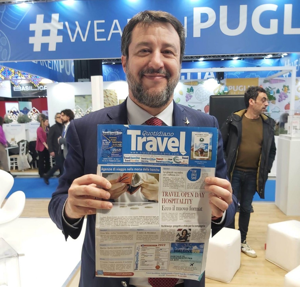 Anche Matteo Salvini, vice presidente del consiglio, ministro dei trasporti e leader della Lega è passato dallo Stand di Travel Quotidiano durante l’ultima giornata di Bit.