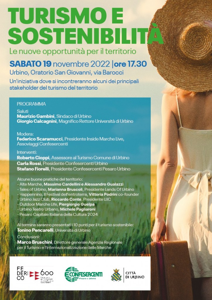 L’iniziativa, promossa da Confesercenti Urbino in collaborazione con il Comune di Urbino e con le imprese turistiche del territorio, si è articolata in interessanti visite alla scoperta del territorio e dei suoi dintorni, con focus sulla mostra dedicata ai 600 del Duca e sul forum “Turismo e sostenibilità, le nuove opportunità per il territorio”, che ha visto susseguirsi i principali stakeholder del turismo per un confronto ricco di spunti sui temi dell’accoglienza e della sostenibilità ambientale.