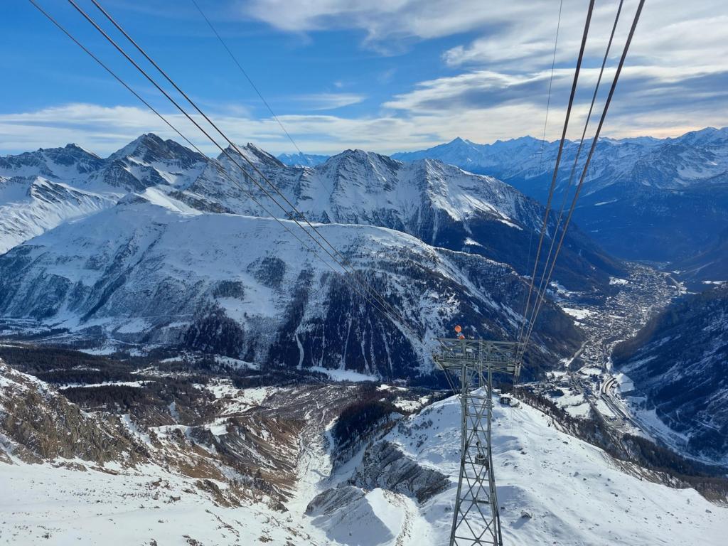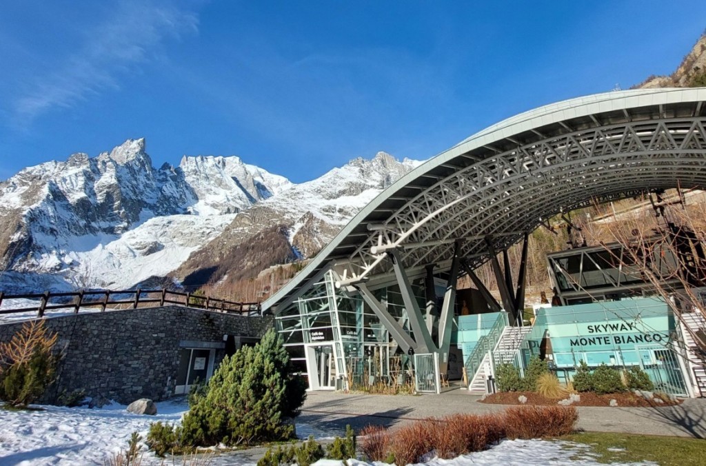 Durante la salita la cabina compie un giro di 360 gradi su sé stessa, permettendo a tutti di ammirare il vasto panorama. Numerose le attività proposte dalla stazione: la Mont Blanc Infinity Room offre un momento immersivo, proiettando su pareti, soffitto e pavimenti le più belle fotografie scattate sulla montagna nel corso di un anno; lo spazio Hangar2173 conserva invece la storia della Skyway. Risale al 1947 l’apertura della prima funivia del monte Bianco, mentre è datata 1957 la spettacolare funivia dei Ghiacciai, che collegava la punta Hellbronner in Italia all’Aiguille du Midi in Francia.