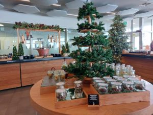 Nella stazione finale si trovano il bistrot Panoramique, un’esposizione di affascinanti cristalli e la terrazza Hellbronn, che per la sua bellezza viene proposta dal comune di Courmayeur come sala per matrimoni civili. Anche qui è disponibile uno spazio per eventi ed è una grande emozione ascendere alla torretta più alta e, con un giro di 360 gradi, ammirare le grandi vette innevate, tra cui le cime del monte Bianco, il Dente del Gigante, le Grandes Jorasses, il Cervino, il monte Rosa e il Gran Paradiso.
