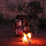 Fra i tour guidati che scendono nel cuore della rossa vallata, spettacolare è la cena Rain god picnic camp, gestita da un personaggio anch’egli nativo, Harold Simpson. La cena con il tipico Navajo taco è seguita da uno spettacolo con il coinvolgimento dei presenti in danze e canti tribali e da una spiegazione sul mondo dei Navajo, una delle 567 tribù differenti censite nel territorio Usa. Ma il clou dell’esperienza è la notte che si passa nella hogan, l’abitazione tradizionale, a forma di cupola, costruita con tronchi d’albero ricoperti con fango, detriti o zolle erbose come isolanti termici e l’ingresso a est, verso il sole nascente, solitamente chiuso con una coperta. La notte, che inizia dopo avere ammirato il cielo stellato, passa sul terreno in un sacco a pelo, in una specie di grande stanza in comune. Così hanno vissuto per secoli e così vivono ancora i nativi. Il fresco della notte si disperde alle prime luci dell’alba, che vista dalla valle assume contorni ancora più unici e incredibili.