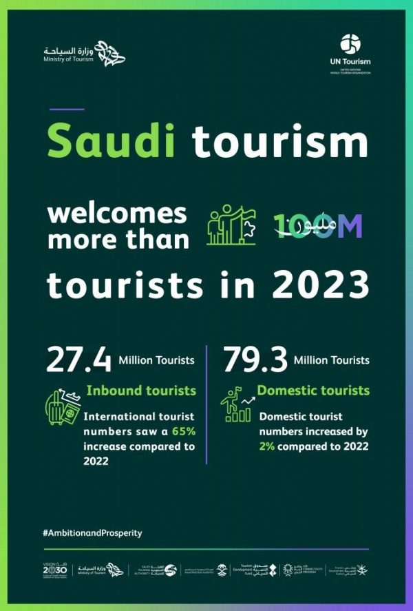 L’Arabia Saudita ha registrato il record di oltre 100 milioni di turisti nel 2023, ricevendo il plauso e il riconoscimento di prestigio internazionale del Un Tourism – l’Organizzazione Mondiale del Turismo delle Nazioni Unite – e del World Travel & Tourism Council (Wttc).