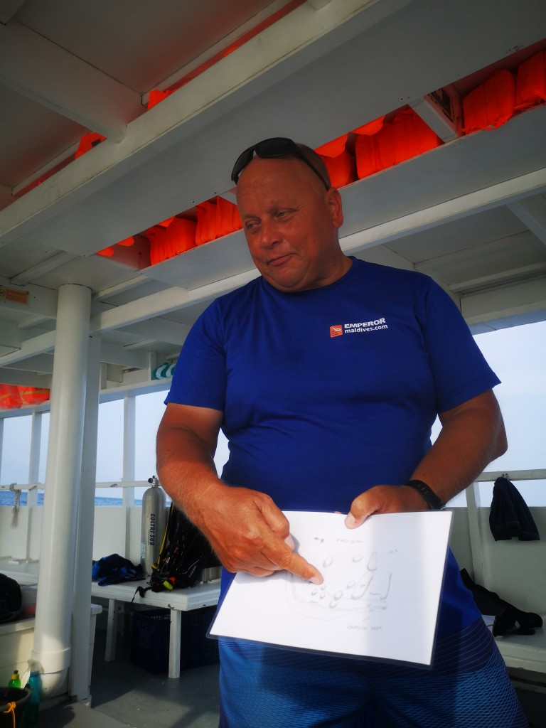 Nel nuovissimo resort di Azemar, nell’atollo di Raa il diving, come del resto in tutte le Maldive, è una cosa seria. Il centro di immersione è affidato alle cure di Mike Kupier, olandese, conoscitore dell’area con più di 10 anni di esperienza in queste acque.