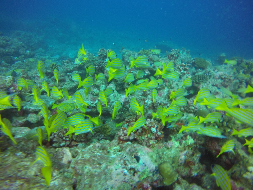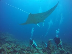 L’atollo è ancora abbastanza “unspoiled” e per questo è difficilissimo incontrare altri gruppi di subacquei, ma soprattutto si stanno cercano altri interessanti punti di immersione oltre ai 18 già individuati. Fra questi spiccano 3 spot dedicati all’osservazione delle maestose mante e, proprio in uno di questi abbiamo provato questa emozionante esperienza di persona.