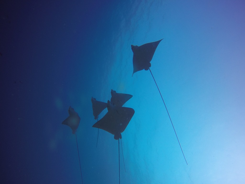E così è stato, in un’immersione non profonda (massimo 17 metri) con 67 minuti di dive a 12 metri, 55 dei quali nel bel mezzo di un gruppo di mante, talmente tranquille ed a loro agio che pareva eseguissero la loro lenta e maestosa danza solo per noi osservatori, aggrappati al fondale.