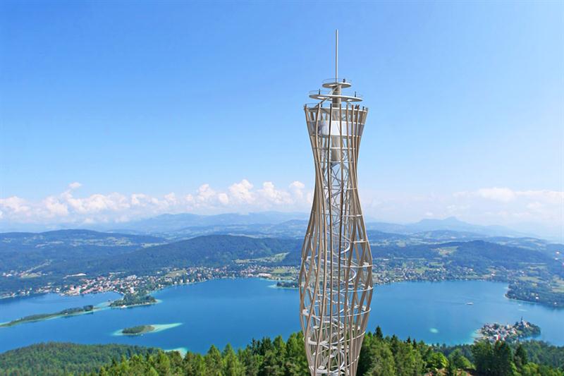 Sul lago Wörthersee, in Carinzia, è stata inaugurata la torre panoramica in legno più alta del mondo, il Pyramidenkogel, una piattaforma sospesa a oltre 100 metri da cui si gode una vista su tutta la Carinzia. La salita è prevista tramite un ascensore panoramico, anche se i turisti più in forma potranno utilizzare le scale. Sulla terrazza più alta è stato realizzato anche lo Sky Box, un locale molto luminoso e riparato dalle intemperie destinato ad ospitare eventi e manifestazioni. Ai bambini d’altezza superiore ai 130 cm, la torre offre un lo scivolo più lungo d’Europa, oltre 120 metri, con un dislivello di 52 metri. La torre panoramica è stata progettata in modo da evitare ogni barriera architettonica. Un ristorante offre specialità regionali carinziane della cucina dell’Alpe-Adria, mentre un vasto parco giochi può intrattenere i più piccoli. La torre Pyramidenkogel sarà aperta per tutti i mesi di luglio e agosto dalle 9 alle 21. L’apertura a settembre sarà dalle 9 alle 20, in ottobre dalle 10 alle 19, da novembre a febbraio dalle 10 alle 18. Il prezzo del biglietto d’ingresso è di 10,50 euro per gli adulti e di 8 euro per ragazzi, studenti, disabili, militari e turisti in possesso di tessera dell’ospite. L’ingresso è gratis per i bambini fino a 5 anni, mentre per i bambini d’età superiore ai 6 anni il prezzo è di 5,50 euro. Previsto anche un biglietto famiglia (2 adulti e 1 bambino) al costo di 24 euro. La torre Pyramidenkogel è tra le tante attrazioni visitabili acquistando la Kärnten Card che permette di accedere ad oltre 100 mete turistiche carinziane gratis e anche più volte.