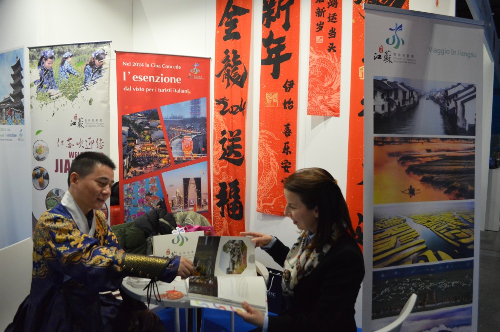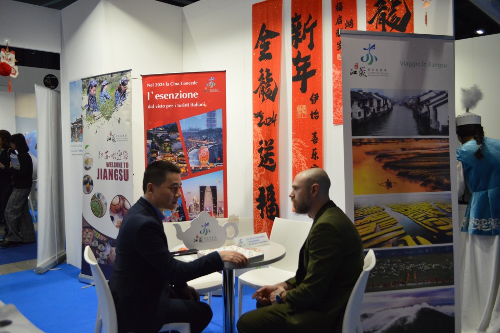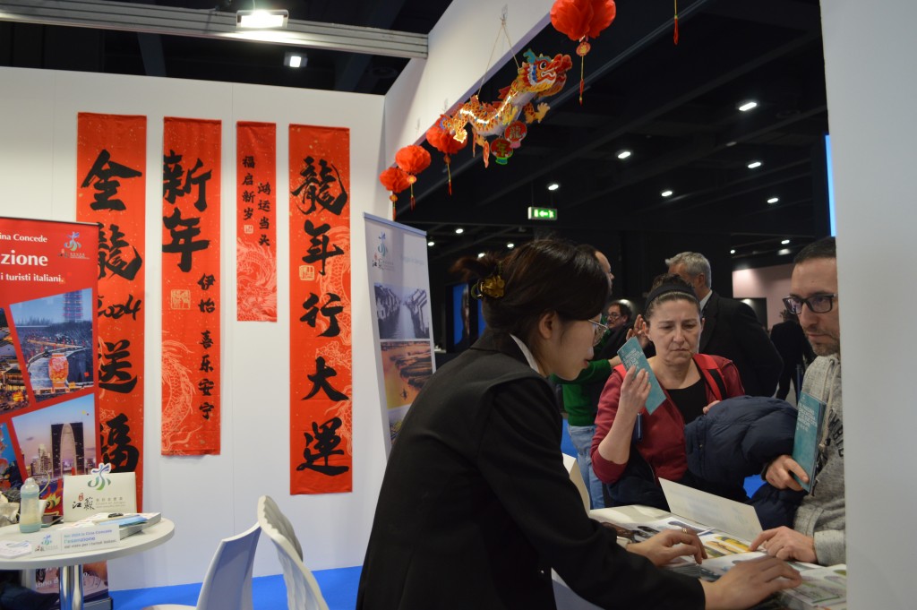 Riflettori accesi sulla provincia di Jiangsu, in Cina, durante l’ultima Bit. E’ un incontro affascinante quello con il Sud-est della Cina, famosa per le molteplici risorse turistiche, il patrimonio culturale unico e la deliziosa cucina locale. Allo stand “Water Charm Jiangsu”, i grandi distici della calligrafia cinese rossa hanno attirato l’attenzione dei visitatori sui fantastici poster e sull’avviso della politica di viaggio senza visto della Cina per i turisti italiani.