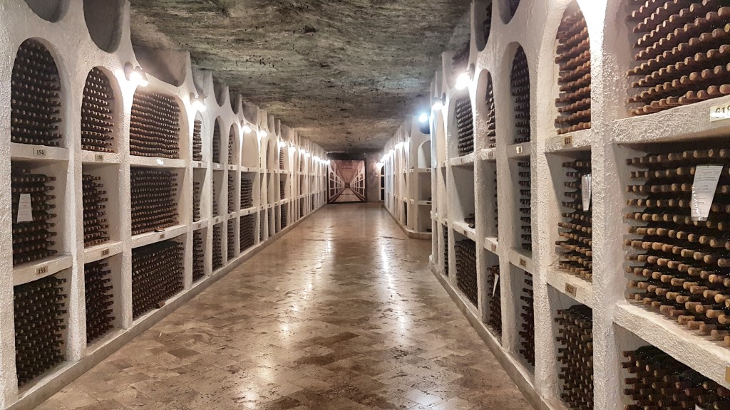 La parte dedicata allo storage delle bottiglie da collezione contiene un milione 250 mila pezzi, inclusa una di vino “pastorale” (da messa) che proviene da Gerusalemme datata 1902, la più antica della collezione, si dice, ancora in teoria bevibile. In queste celle, dove per circa 3 euro/anno a bottiglia, si possono stivare le collezioni private, vi sono addirittura bottiglie appartenute al feldmaresciallo Hermann Göring trafugate qua e là e intercettate mentre le spediva in luogo sicuro, prima della disfatta. Nelle sale il presidente Putin ha festeggiato il suo 50° compleanno e possiede una sezione privata, ma non è l’unico. Qui c’è anche la “cella” di Angela Merkel, di frequente in visita alle cantine e non si fa fatica a capire come Cricova sia diventata una delle attrazioni turistiche della Moldova.