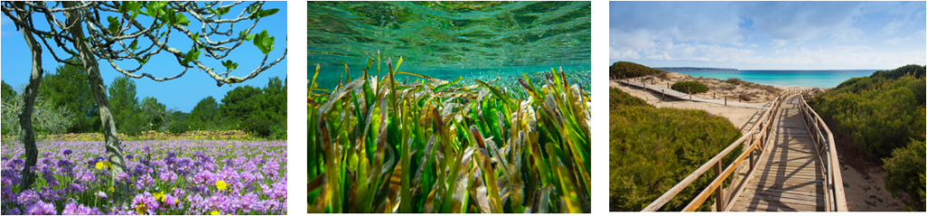 Per la protezione dell’isola, di rilievo sono le azioni per la salvaguardia del Parco Naturale de Ses Salines, un perfetto esempio della ricchezza della biodiversità mediterranea, che rappresenta anche una zona di riposo e di nidificazione per gli uccelli migratori, oltre ad essere ricca di Posidonia. Questo spazio naturale comprende una serie di habitat terrestri e marini dal valore ecologico inestimabile.In tutta questa zona sono assolutamente vietati l’ancoraggio di imbarcazioni, la pesca subacquea, la pesca sportiva di qualsiasi genere e le immersioni con scafandro autonomo. A Can Marroig si trova il centro di Interpretazione dove vengono svolte attività dirette a far conoscere il parco e in particolare la sua flora, fauna e l’eredità delle saline.