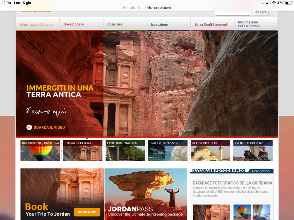 Dopo diversi anni, il Jordan Tourism Board ha rinnovato completamente il suo sito internet rendendolo di maggiore impatto visivo, più ricco di contenuti e più social. Oltre alle informazioni generali di base per visitare il paese, il sito propone un vero e proprio tour in tutto ciò che si può visitare e fare in Giordania, dalle attrazioni, alla ricerca degli hotel in diverse aree del paese, all’acquisto diretto del Jordan Pass, alla chat con un operatore locale che risponde ai quesiti dei potenziali viaggiatori. Un’area intera è dedicato ai social media con la possibilità di vedere in tempo reale cosa fanno e postano i visitatori.