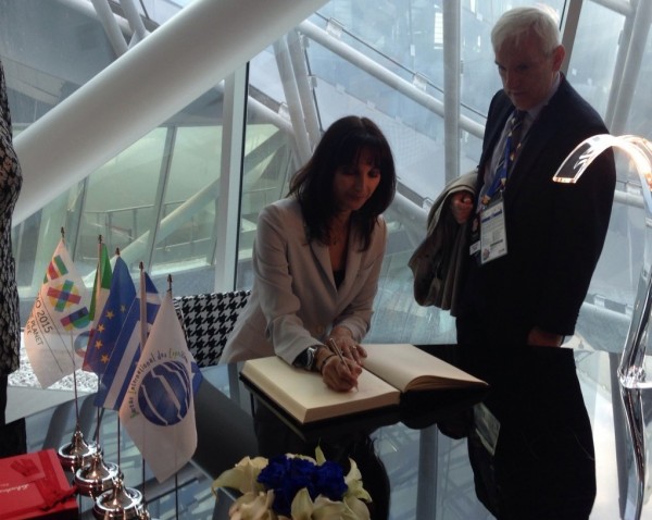 La Grecia in primo piano a Expo, in occasione dei festeggiamenti per la Giornata nazionale tenutasi lo scorso 21 ottobre. Il sottosegretario di stato per il turismo, l’economia e lo sviluppo, Elena Kountoura, ha ribadito che «il concetto dello sviluppo sostenibile, tema portante della nostra presenza all’Expo non concepisce la terra solo come un museo per mantenere le risorse naturali, la flora e la fauna, ma include anche la preoccupazione per i sette miliardi di abitanti del pianeta che hanno bisogno di cibo, istruzione e assistenza sanitaria». Il sottosegretario ha poi continuato ricordando il ruolo fondamentale che il turismo ha per l’economia greca, evidenziando anche l’importanza della cucina locale, vera e propria identità culturale, sancita anche dall’ingresso della dieta mediterranea nella lista del patrimonio culturale immateriale dell’umanità, stilata dall’Unesco nel 2010. La delegazione italiana, guidata da Silvia Velo, sottosegretario di stato all’ambiente e alla tutela del territorio e del mare, insieme al commissario generale di Expo Milano 2015, Bruno Antonio Pasquino, ha accolto gli ospiti ellenici ricordando la vicinanza e la solidarietà politica e sociale dell’Italia nei momenti di difficoltà passati da Atene negli ultimi mesi. La delegazione greca ha poi visitato Palazzo Italia, dove il sottosegretario ha firmato il libro degli ospiti illustri. I festeggiamenti sono poi proseguiti per tutto il giorno al padiglione ellenico, all’interno del cluster Biomediterraneo.