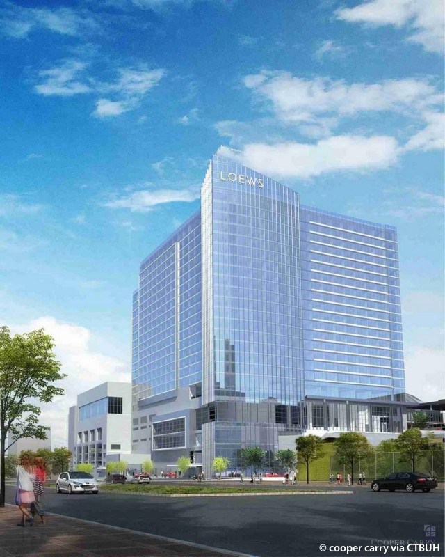 Il nuovo Loews Hotel, la cui costruzione è iniziata nel marzo scorso e si dovrebbe completare nel 2020 sarà il primo “grande albergo” costruito nell’area urbana dal 1985. Avrà 800 camere, lobby bar, ristoranti di fama, piscina coperta e circa 6mila mq di spazi per convention e meeting. L’albergo servirà come uno dei maggiori “host hotel” per il centro congressi attraverso il nuovo ponte sospeso di connessione. Nella stassa area sviluppi ulteriori vedranno il Museum hotel (120) camere, hotel Indigo downtown (118), hotel Indigo Crossroads (80), Aparium hotel (132) .