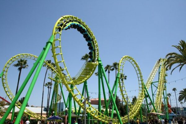 L’anno scorso, il parco ha introdotto il primo e unico “dive coaster” (una montagna russa verticale che lascia cadere i partecipanti con accelerazioni da 5 g): Hang Time, che ha il suo picco a 150 piedi (46 mt) sopra l’area di Knott’s Boardwalk. La nuova dive coaster ha sospensioni a mezz’aria e una caduta oltre i 96 gradi, che è la più forte in tutta la California.