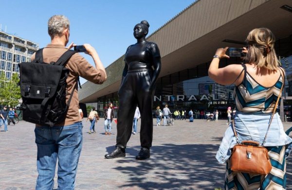 C’è anche una scultura di una giovane donna di colore, alta quasi 4 metri e realizzata dall’artista britannico Thomas J Price, tra le più recenti novità culturali di Rotterdam. L’opera è situata sulla Stationplein, la piazza antistante la stazione Centrale della città. Mostra un atteggiamento ambivalente: vulnerabilità e fiducia in se stessa, resilienza e atteggiamento scanzonato. Ma non è una statua, non poggia su un piedistallo, tiene invece, sicura, entrambi i piedi per terra. Con questo lavoro, Price offre la sua risposta a una lunga storia di glorificazione di individui o ideologie. Celebrando una donna immaginaria in abbigliamento sportivo e casual, Price sfida l’emarginazione di coloro che tradizionalmente non sono mai stati rappresentati negli spazi pubblici.