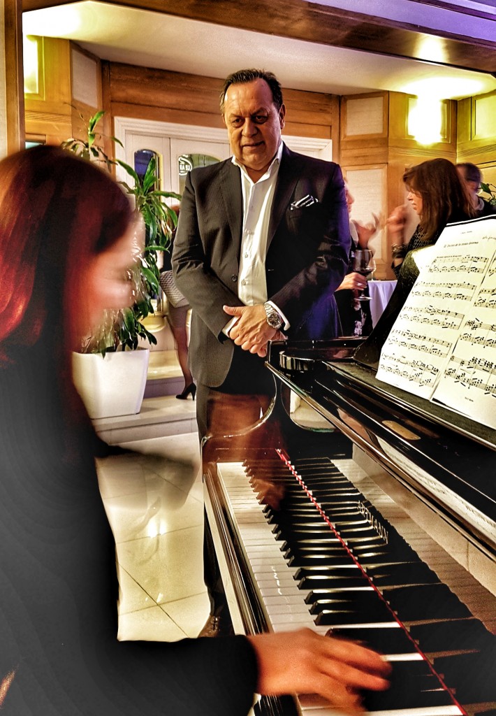 Gustavo Santos ministro del turismo argentino mentre ascolta una sonata al piano dedicata al Paese.