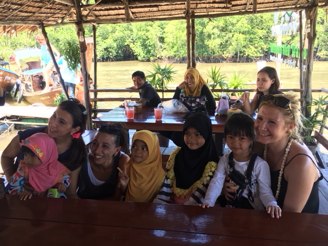 Momento clou della giornata è stata la visita della grotta di Khao Kanab Nam, suggestiva ed interessante, dove sono stati trovati i resti di uomini primitivi e che fu utilizzata dai giapponesi come base durante la guerra mondiale. Fuori programma divertente, all’uscita della grotta una numerosa famiglia di scimmie ha mostrato ai partecipanti del mega famtrip come si insegna ai cuccioli ad arrampicarsi sulle rocce.
