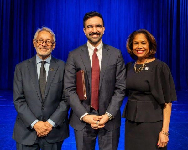 Charles Flateman, Board Chair di New York City Tourism + Conventions; Zohran Mamdani, Sindaco di New York City; Julie Coker, Presidente e CEO di New York City Tourism + Conventions.