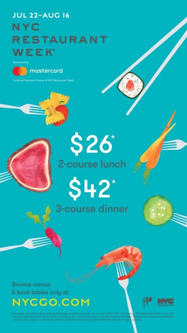 Nyc & Company, l’ente del turismo dei cinque distretti di New York City, ha svelato i dettagli dell’edizione estiva della Nyc Restaurant Week 2019, che si svolgerà dal 22 luglio al 16 agosto .Questa estate sono quasi 400 i- ristoranti partecipanti, situati in oltre 40 quartieri dei cinque distretti, che offriranno menu a prezzi fissi di due portate a pranzo ($26) e di tre portate a cena ($42), mance, tasse e bevande escluse.