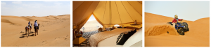 Il deserto di Sharqiyah Sands invece, conosciuto anche come Wahiba Sands, dal nome della popolazione beduina che le abita, si trova a tre ore da Mascate, ed è facilmente accessibile in giornata con escursioni in 4×4. È possibile organizzare anche escursioni di più giorni: in due giorni si potrà infatti attraversare il deserto, da nord a sud. La notte si può trascorrere nelle tende tradizionali oppure in moderni e lussuosi accampamenti con tutte le comodità come ad esempio acqua calda, wifi e tante attività proposte: passeggiate sulle dune, quad, sand boarding e dune bashing uscite con dromedari che riescono ad inoltrarsi dove gli autoveicoli non possono giungere. L’Oman organizza inoltre, per coloro che ricercano qualcosa di avventuroso ma allo stesso tempo straordinario e lussuoso, dei camping privati che uniscono la classica esperienza del campeggio eco-friendly al comfort di un alloggio di lusso: i cosiddetti glamping per garantire un’esperienza unica agli amanti del lifestyle e del lusso ecosostenibile. Questi campi tendati sono i più esclusivi del Sultanato, le tende sono mobili e questo permette di godere di un’esperienza tailor-made, di rara bellezza, tra le dune.