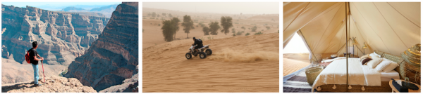 Un’esperienza emozionante e assolutamente imperdibile è trascorrere una notte sotto le stelle in completa comodità, nel deserto di Sharqiyah, a due ore dalla capitale, è possibile infatti pernottare in campi tendati fissi, attrezzati con servizi e ristorante. Oppure per un’esperienza di glamping completamente tailor-made, i Private Camps di Magic Arabia sono la soluzione ideale: ampie tende da campo immerse nella natura selvaggia, per vivere una vera avventura nel deserto senza rinunciare ai comfort e all’esclusività. Le eco-tende, infatti, sono progettate con materiali sostenibili e hanno un design finemente studiato, conservando l’essenza beduina in tutti i loro lussuosi dettagli.