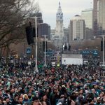 Il serpente di folla che ha celebrato la vittoria degli Eagles si è assiepato lungo il percorso prestabilito dall’angolo di Broad and Pattison per terminare al Philadelphia Museum of Art, quello della “scalinata di Rocky Balboa.