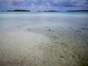 La capanna sotto le palme dell’isolotto prescelto è dove ci si gode il picnic, e prima di gustare pane di cocco, pesce fresco arrostito o crudo, pollo, frutta, si va a nuotare, fare snorkeling, socializzare con altri ospiti, circondati da innocui squaletti pinna nera del reef. Poi, dopo pranzo, si va di isoletta in isoletta camminando nelle basse acque della laguna fotografando lingue di sabbie, acque cristalline, uccelli rumorosi.