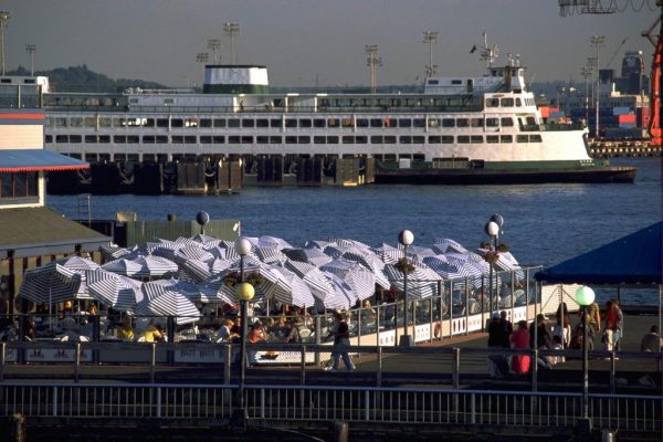 Il Seattle Waterfront. Elliott bay, il porto naturale di acque profonde di Seattle è affollato di traghetti merci e persone, navi da crociera di lusso, imbarcazioni da sightseeing e migliaia di natanti privati. La miglior veduta della rada si ha dal waterfront che si distende lungo la Alaskan Way dal Pier 48 a sud al Pier 70 a nord. A metà strada, costruito sul Pier 59 si trova il Seattle Aquarium. Pier 66 è la casa di Bell Street Cruise Terminal, porto d’attracco per le crociere di lusso per l’Alaska’s Inside Passage (un secondo terminale si trova al Pier 90).