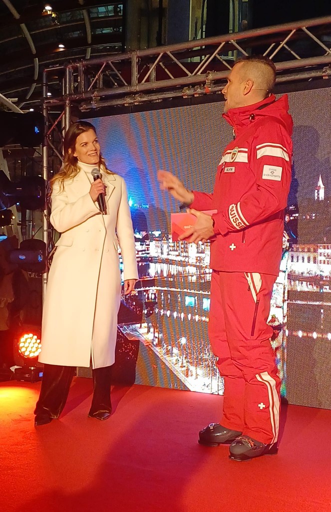 Christina Glaeser, direttrice di Svizzera Turismo Italia, con il presentatore Alvin