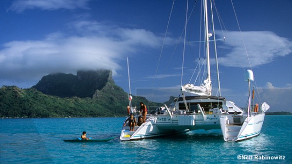 Le isole di Tahiti viste dal mare. Quale modo migliore per scoprire cinque arcipelaghi della Polinesia francese se non una crociera a bordo di imbarcazioni di lusso, catamarani, barche a vela o di dimensioni ridotte ma dotate di tutti i comfort. Le Isole di Tahiti sono collegate mediante frequenti servizi navetta operati da battelli, mentre cargo e pittoresche golette propongono cabine o posti-ponte verso le Isole di Sottovento, Tuamotu, Marchesi e Australi. Le compagnie di barche a vela monoscocca o catamarani, di base a Tahiti, Moorea e, soprattutto, nelle Isole di Sottovento, offrono la possibilità di noleggio con o senza skipper e hostess, per un weekend, per qualche giorno o per un’intera settimana. Tra le compagnie cui affidarsi ci sono Paul Gauguin Cruises, Aranui 3, Tahiti Yacht Charter e Gulliver.