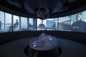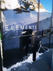 “007 Elements” aperto l’estate 2018, si sviluppa su 10 sale, iniziando da Barrel of the gun dove si assiste, in altissima definizione, alla sigla del film, per essere poi portati all’interno lungo un percorso davvero interessante. Da qui si passa alla “Plaza” una terrazza panoramica affacciata su uno scenario mozzafiato, quello delle maestose Alpi, poi alla “lobby” dove un interessante filmato intervista vede il regista Sam Mendes narrare la storia dei film da lui diretti (Skyfall e Spectre) e un excursus da “Dr No” ad oggi. Si procede per il “Lair” dove ancora immagini filmate esaltano i dialoghi dei film, per poi arrivare alla “Briefing room” dove Naomie Harris (la nuova Miss Moneypenny narra attraverso immagini straordinarie il rapporto dei film di 007 con gli iconici luoghi divenuti famosi anche grazie ad essi.