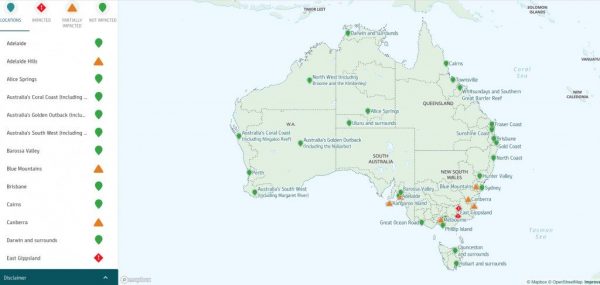Tourism Australia segnala un nuovo aggiornamento sulla situazione degli incendi nel Paese: «Nonostante l’allerta rimanga alta e la sicurezza dei visitatori e delle comunità locali continui ad essere di massima priorità, gran parte delle principali destinazioni turistiche non è stata interessata dall’emergenza – si legge nella nota dell’ente -. Consultando questa pagina è possibile reperire informazioni aggiornate quotidianamente per monitorare la situazione e avere informazioni precise sulle aree interessate o meno dall’emergenza, anche grazie alla nuova mappa interattiva che riporta visualmente le allerte in corso.