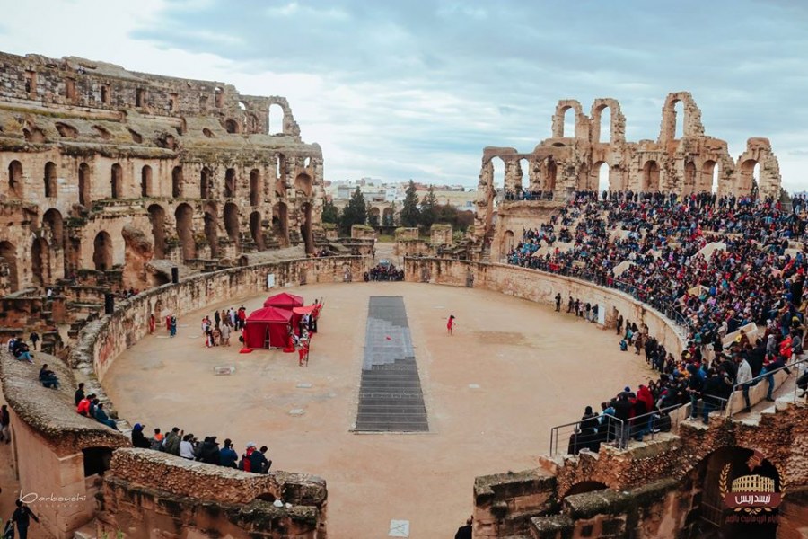 Non lontano da Mahdia, antica capitale della Tunisia, si trova la piccola cittadina di El Jem. El Jem fu un antico villaggio berbero, successivamente divenuta seconda città romana in Africa per importanza, dopo Cartagine, con il nome latino di Thysdrus. El Jem è sede della terza arena più grande al mondo, dopo il Colosseo e l’arena di Capua. Costruita dai romani attorno al 238 d.C. e divenuta patrimonio dell’umanità Unesco nel 1979, molto probabilmente venne usata per spettacoli di gladiatori e corse dei carri. Nel weekend 20-22 marzo 2020, la cittadina tunisina ospiterà la 5^ edizione della manifestazione intitolata “Le Giornate Romane di El Jem” o di Thysdrus, per chiamarla con il suo nome romano. Si tratta di un evento patrocinato dal ministero della Cultura tunisino. Per tre giorni grandi e piccini sono invitati a fare un salto nel passato e rivivere il tempo di una civiltà millenaria, diventata parte integrante della tradizione culturale tunisina.