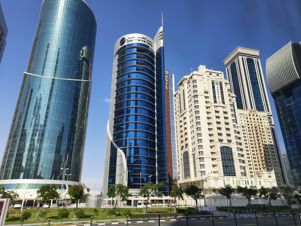 Architetture futuristiche dei grattacieli di Doha come l’Aspire Tower e il Burj Doha e la Katara towers di Lusail che si affacciano sull’antico souk, offrendo un’esperienza ricca di contrasti.