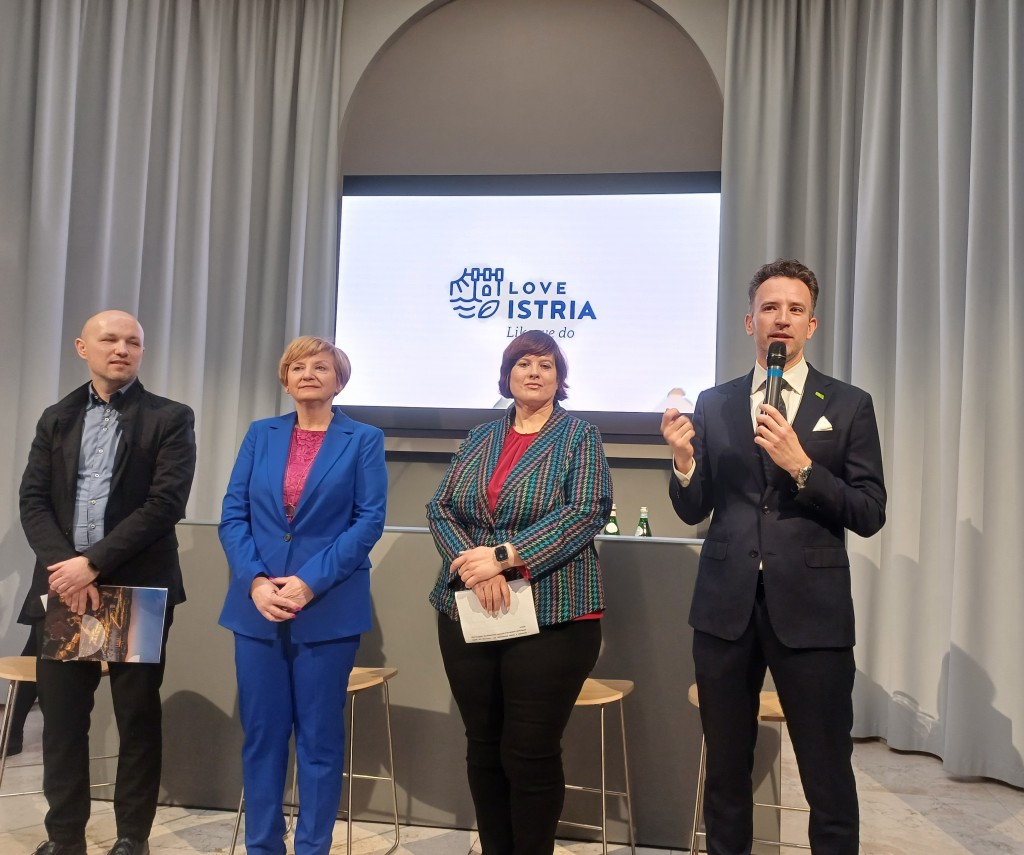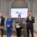 Patricija Gržinič, Direttrice dell’Ente del Turismo di Portorose e Pirano, insieme ad Aljosa Ota, direttore dell’Ente Sloveno per il Turismo con due rappresentanti dei Comuni di Portrose, Capodistria e Ancarano