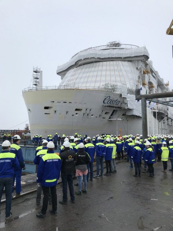 Quindici giorni dopo la consegna di Costa Venezia, la prima nave Costa progettata appositamente per il mercato cinese, Costa Smeralda segna un ulteriore momento nel programma di espansione della compagnia italiana. Costa Crociere, compagnia italiana di Carnival Corporation ha celebrato oggi il varo tecnico della nuova ammiraglia Costa Smeralda presso i cantieri Meyer di Turku, uno dei più grandi complessi cantieristici del mondo. Costa Smeralda, che entrerà in servizio a partire dall’ottobre 2019, una volta completato l’allestimento degli interni, sarà la prima nave Costa alimentata a gas naturale liquefatto (LNG), il combustibile fossile più “pulito” al mondo. «È con grande entusiasmo che celebriamo un momento così importante per la costruzione della nostra nuova nave – commenta Neil Palomba, Direttore Generale di Costa Crociere – Costa Smeralda rappresenta una grande innovazione per il mercato internazionale e un passo importante verso la definizione di nuovi standard per l’intero settore. Il Gruppo Costa è leader in Europa e in Cina: continueremo a guidare il mercato puntando sullo sviluppo di un turismo sostenibile». Con oltre 2.600 camere a disposizione, Costa Smeralda accompagnerà i suoi ospiti in un vero e proprio “tour d’Italia”, con tante aree dedicate al divertimento, al gusto e alle feste. La nave proporrà 11 diversi ristoranti, 19 bar, una splendida area spa con 16 sale riservate ai trattamenti, un parco acquatico con scivoli, 4 piscine e un’area interamente dedicata ai bambini. Costa Smeralda avrà anche il suo Museo, il CoDe – Costa Design Museum, dedicato all’eccellenza del design italiano.