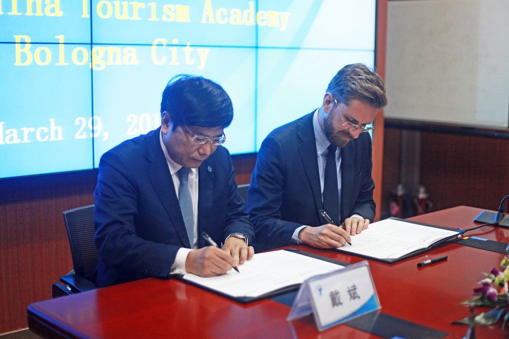 Bologna è pronta per l’accoglienza dei visitatori dalla Cina grazie ad un protocollo d’intesa firmato oggi presso la sede della China Tourism Academy che dà il via ad un partenariato triennale, getta le basi per collaborazioni commerciali più strette con i principali tour operator cinesi e promuove la realizzazione di un collegamento aereo diretto. Bologna diventa così la prima città metropolitana italiana ad aver ricevuto la certificazione “Welcome Chinese”, il prestigioso riconoscimento governativo che permette di entrare nel mercato cinese in modo diretto, attraverso il sostegno della China Tourism Academy, che ne supporta il programma e offre particolari benefits di accredito presso i più importanti tour operator cinesi, in collaborazione con China Central Television (CCTV), rete televisiva nazionale, e China Union Pay, unico circuito di carte di credito emesso in Cina. «La firma del protocollo d’intesa ci permette di avviare i tanti progetti di accoglienza dei turisti provenienti dalla Cina. La missione a Pechino ci consente inoltre di incontrare i principali operatori internazionali e raccogliere tutte le informazioni fondamentali per strutturare al meglio le offerte e i prodotti destinati ai turisti cinesi» ha dichiarato Patrik Romano, direttore generale di Bologna Welcome. «Da tempo abbiamo predisposto materiale informativo anche in lingua cinese e adesso proseguiremo con la realizzazione di nuova segnaletica, percorsi di formazione per gli operatori turistici come guide e hotel. È inoltre già online il portale BolognaWelcome.it anche in lingua cinese, e stiamo pianificando azioni promozionali dedicate sui social network cinesi, all’interno di fiere ed eventi riservati ai tour operator internazionali». «Grazie agli interventi già realizzati e a quelli che concluderemo a breve, l’aeroporto di Bologna diviene oggi il quarto scalo in Europa ad ottenere la certificazione Welcome Chinese. – ha dichiarato Nazareno Ventola, amministratore delegato dell’Aeroporto Marconi –. Si tratta di un riconoscimento molto importante, anche per le compagnie aeree cinesi, nell’ottica di attivare in futuro un volo diretto tra Bologna e la Cina. Per ottenere questa certificazione, abbiamo realizzato una serie di azioni: dalla traduzione di tutta la segnaletica interna al Terminal in cinese, allo sviluppo della versione cinese del nostro sito web, agli accordi già conclusi con tutti i negozi dell’aeroporto perché accettino le carte di credito Unionpay, alla traduzione in cinese dei menù dei ristoranti, alla disponibilità gratuita di acqua calda in tutti i punti di ristorazione (come richiesto dai passeggeri cinesi). Saremo inoltre presenti sui principali social media cinesi».