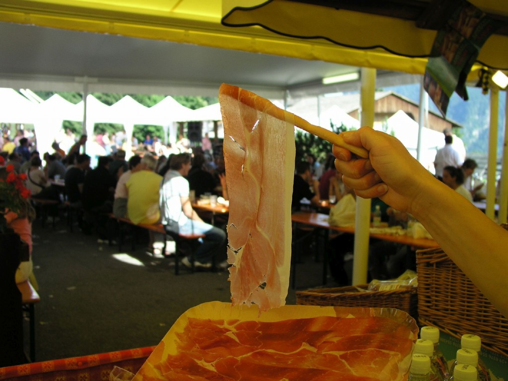 Noto per il suo prosciutto, il borgo di Sauris (Friuli Venezia Giulia) è rinomato anche per i suoi eccellenti ristoranti, per i piccoli hotel, per l’albergo diffuso e per i suoi artigiani che lavorano il legno, tessono, producono birra. Il prosciutto crudo che si produce in questo incantevole angolo della Carnia, fra i boschi della Val Lumiei, ha un gusto inconfondibile: tutelato dal marchio d’Indicazione geografica protetta, viene leggermente affumicato con legno di faggio aromatizzato con ginepro ed erbe e poi lasciato lentamente stagionare all’aria fresca e asciutta dei monti. Nei due fine settimana del 14-15 e 21-22 luglio, Sauris dedica questa sua specialità la Festa del prosciutto, durante la quale saranno allestiti caratteristici punti di ristoro, dove si potranno degustare prosciutto e specialità tipiche carniche (piatti a base di prosciutto e speck, formaggi, gnocchi, griglia, piccoli frutti e dolci, senza dimenticare i vini e la birra prodotta proprio a Sauris) con l’accompagnamento di musica dal vivo e danze tradizionali. Ad arricchire il programma, il tradizionale mercatino dell’artigianato e dei prodotti agroalimentari della montagna, le visite guidate al prosciuttificio Wolf per scoprire segreti e tecniche di lavorazione, la mostra dedicata alla “Diga del Lumiei 70 anni dopo”, le visite guidate al centro etnografico e alla medievali chiesa di Sant’Osvaldo e San Lorenzo e, le sere di sabato 14 e 21, fuochi d’artificio.