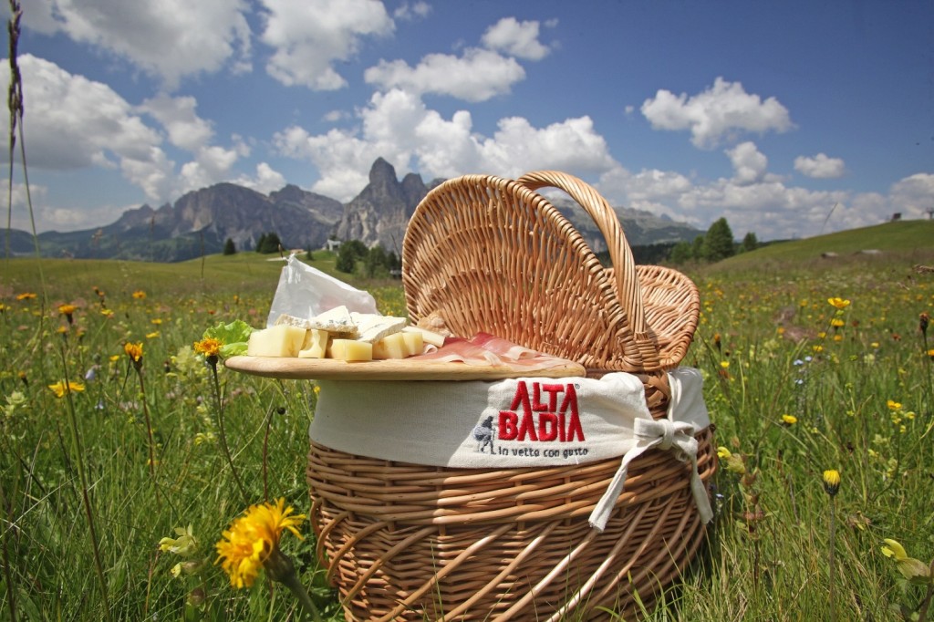 In Alta Badia, nel cuore delle Dolomiti, torna in voga il picnic, quella “merenda” contenuta in un cestino stile britannico.