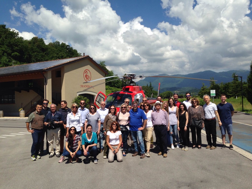 Le colline di Conegliano-Valdobbiadene, candidate a patrimonio Unesco, sono state sorvolate per 20 minuti da un gruppo di 15 giornalisti e critici enogastronomici che, lo scorso week-end, hanno partecipato al press tour organizzato dalla cantina Le Manzane di San Pietro di Feletto (Treviso). Tre giorni intensi con show cooking, visite e degustazioni in alcune delle realtà più rinomate della zona. Dopo la presentazione di Prosa “Prosecco&Rosa”, la rassegna di vini e presidi Slow Food in programma sabato 9 luglio a Ca’ del Poggio, Alberto Stocco ha condotto lo show cooking con la preparazione della tartare di ostriche allo Springo Blue Conegliano Prosecco Superiore Docg Brut Rive di Formeniga della cantina Le Manzane. La serata è continuata con la cena in terrazza dove sono state servite le esclusive creazioni degli chef Marco Stocco e Vincenzo Vairo e la degustazione delle specialità artigianali della Biscotteria Bettina di Preganziol realizzate interamente con ingredienti naturali. La mattinata successiva l’Ecureuil AS 350 B3 della società Elifriulia, decollato dalla base eliporto del Cadore, è atterrato nel piazzale della cantina Le Manzane. Il sorvolo in elicottero ha permesso a fotografi e cameramen di scattare delle immagini e di realizzare delle riprese aeree davvero suggestive delle terre del più famoso spumante italiano, il Prosecco Superiore. Gestita con passione e determinazione da Ernesto Balbinot, affiancato dal figlio Marco e dalla moglie Silvana, Le Manzane coltiva, oltre al Glera, anche vitigni autoctoni della Marca Trevigiana come il Verdiso e il Manzoni Bianco. Ogni anno la cantina organizza una vendemmia benefica. Quest’anno l’evento, giunto alla quinta edizione, si svolgerà domenica 4 settembre e i fondi raccolti saranno destinati alla fondazione Oltre il Labirinto Onlus per l’acquisto delle hugbike, le “biciclette degli abbracci” che saranno donate a famiglie con soggetti affetti da autismo.