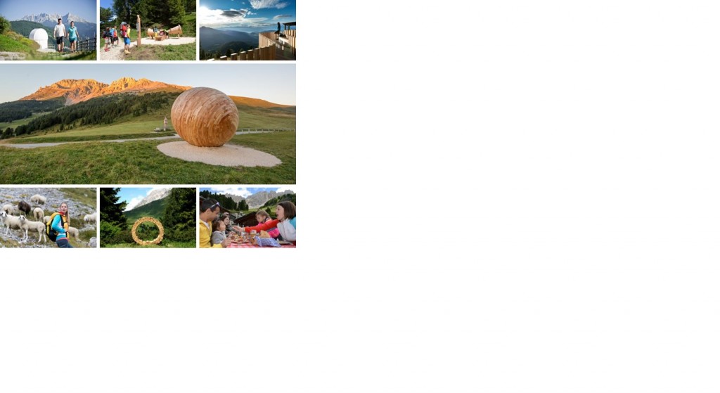Fra i pascoli in quota, il LATEMAR.ALP è una facile escursione che regala agli occhi autentiche gioie della natura e ai bambini tante informazioni utili e curiosità grazie alle stazioni con audio-giochi interattivi. Sempre in quota Latemarium, il nome stesso di LATEMAR.360° suggerisce quanto anche questa proposta escursionistica abbia a che fare con scorci spettacolari e vette alpine, ingredienti di un’emozionante salita che vanta ben quattro piattaforme (una delle quali è parte del famoso rifugio Oberholz) per farsi travolgere dalla bellezza dal Patrimonio dell’Umanità UNESCO.