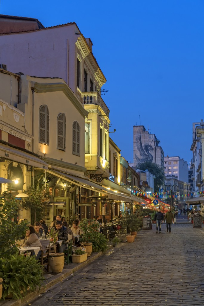 La sera inizia nella zona di Psirrì in piazza Santa Irini e nelle animate e vivaci strade di Thissio. La mattina si fa shopping nelle vie colorate ed eleganti di Kolonaki, si passeggia per Monastiraki curiosando nei vicoli degli antiquari e nei negozi che profumano di tante spezie . Sul tardi, ci si può perdere nella magia dei festival musicali di Gazi e nelle mostre d’arte di Metaxourghio. La mattina successiva, si sorseggia caffè ammirando l’Acropoli nei piccoli e caratteristici caffè della Plaka e ci si può soffermare a sfogliare un libro o a leggere il giornale. Uno dei tanti cocktail bar può accogliervi per dare inizio alla serata, magari seduti in una delle terrazze dove lo sguardo si perde sull’orizzonte fino al mare.